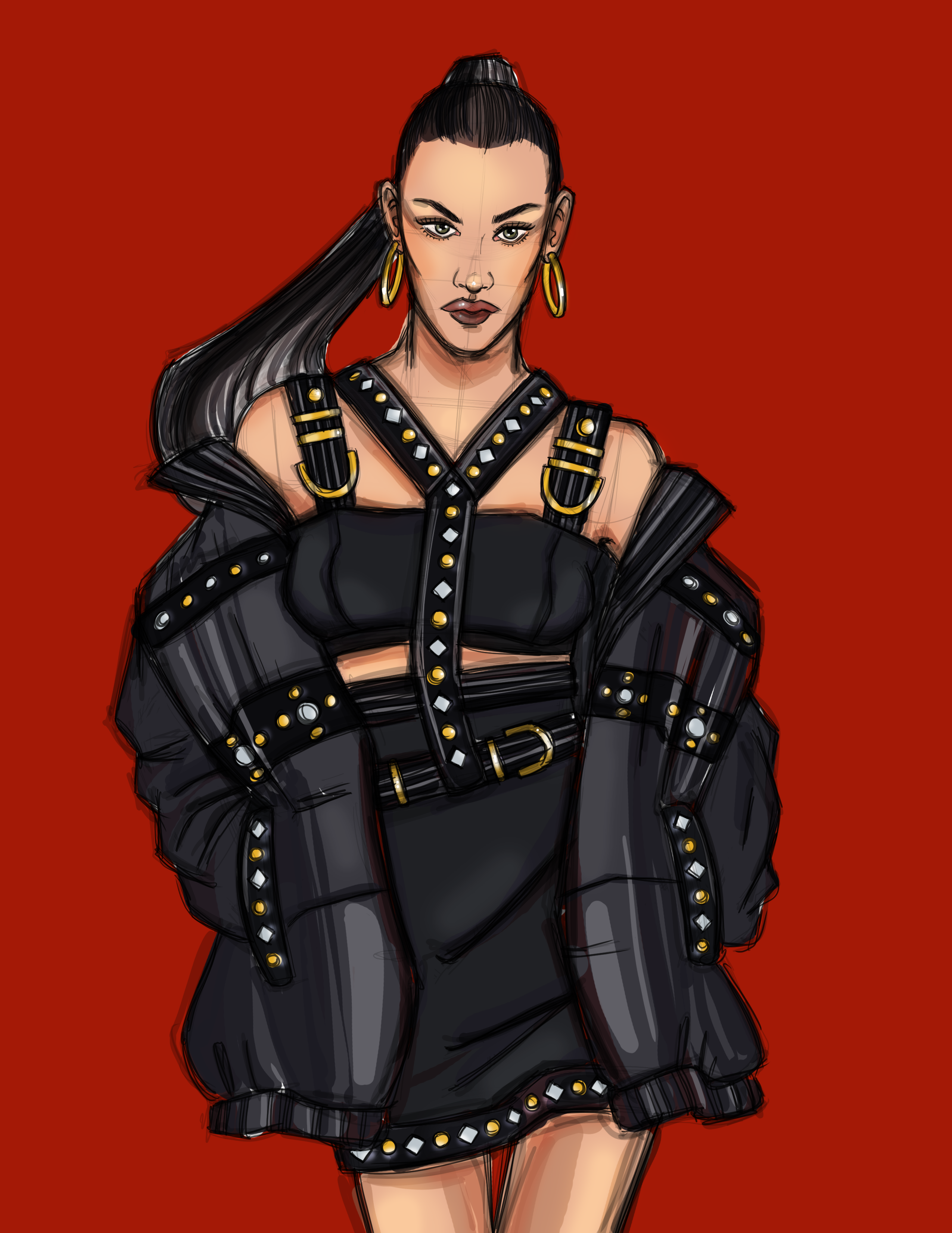 A fashion illustration of Bella Hadid for the Versace runway show at Milan.Digitally illustrated in Adobe Photoshop.