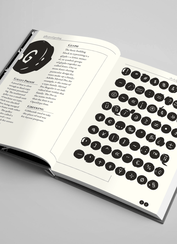The book has been designed to be visually type-heavy, staying true to its contents.