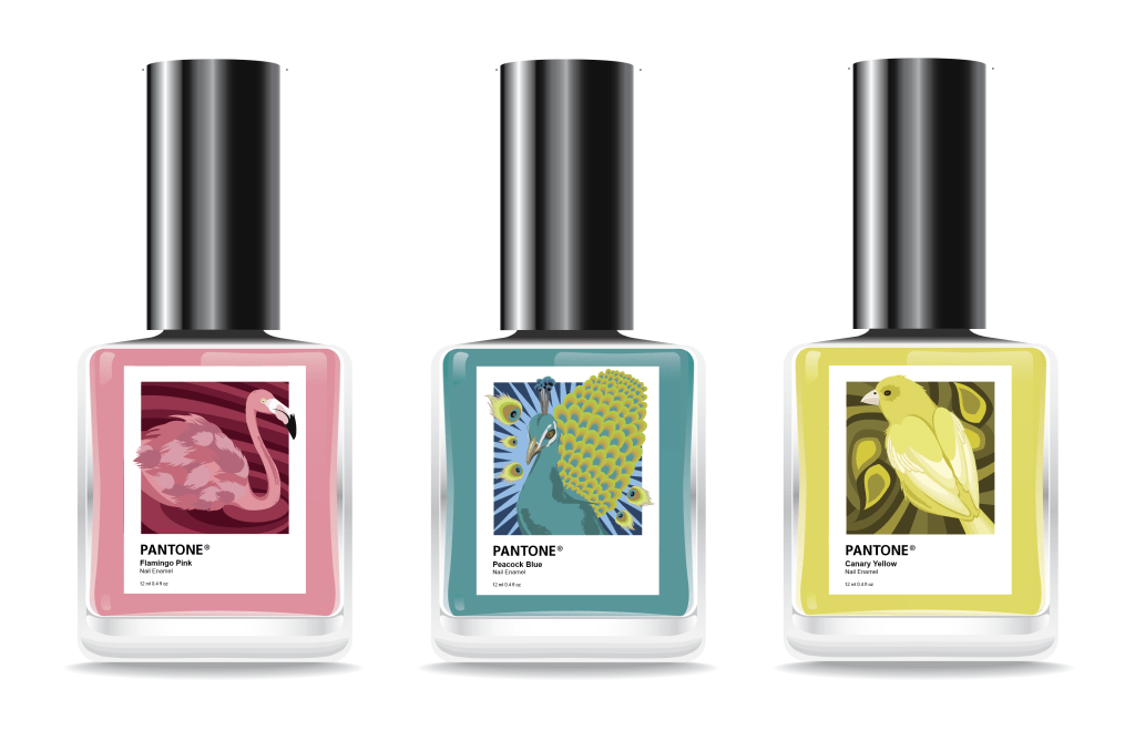I chose Pantone as my brand and developed a set of 3 nail enamels for the same. The set is inspired from 3 birds that have Pantone colors named after them.