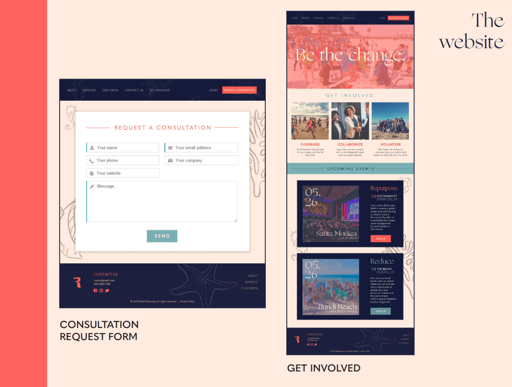 My teammates and I worked together to create the visual identity of the brand and develop a set of usable collateral material including a website, an advertising campaign, an informational brochure, a social media page, and necessary pieces for two events, namely a beach cleanup and a sustainability symposium.